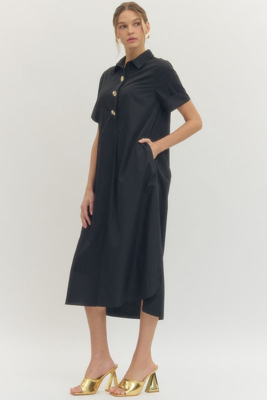 D29516P SHORT SLEEVE MIDI DRESS COLLAR W/POCKETS
